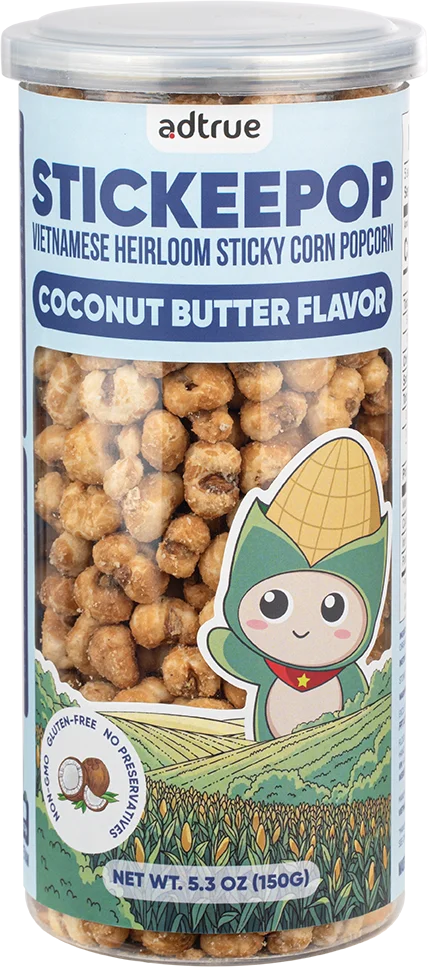 Made from pure coconut butter extracted from Bến Tre’s signature coconuts, Vietnamese Heirloom Sticky Corn Popcorn – Coconut Butter Flavor offers a naturally rich and aromatic taste. Each crisp, golden kernel captures the gentle sweetness and creamy essence of Vietnam’s finest coconuts, a wholesome indulgence crafted for modern, mindful enjoyment.