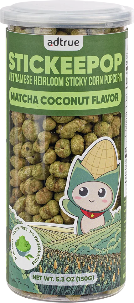 Vietnamese Heirloom Sticky Corn Popcorn – Matcha Coconut offers a refreshing twist with its light, natural flavor. The gentle richness of coconut blends with premium matcha for a modern, refined snack — perfectly crafted for a new generation that values wellness and inspiration.